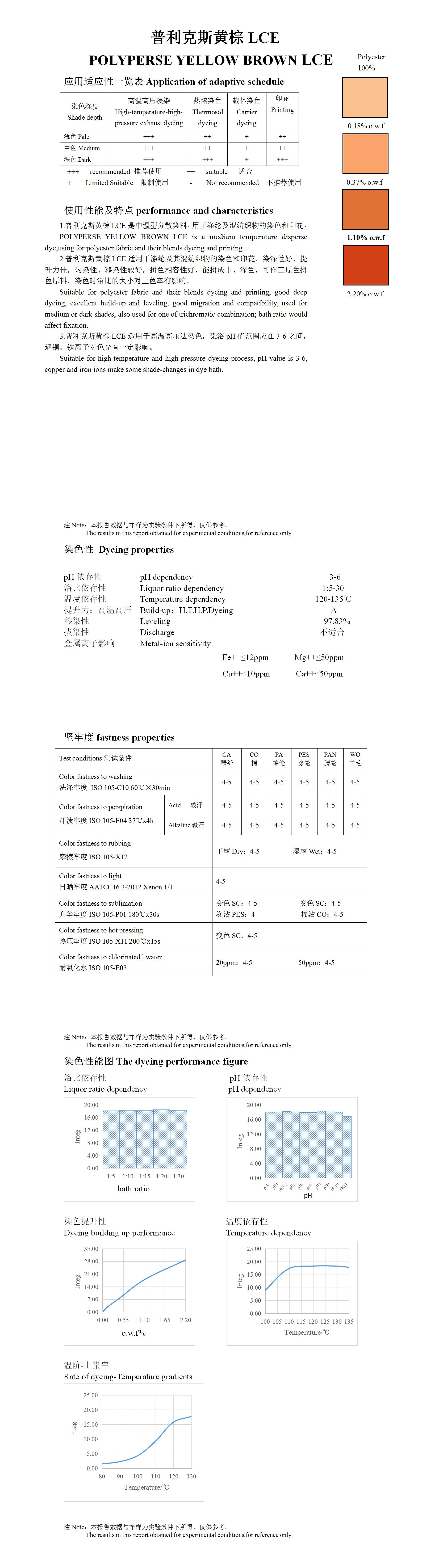 POLYPERSE YELLOW BROWN LCE is a high temperature disperse dye,using for polyester fabric and their blends dyeing and printing .