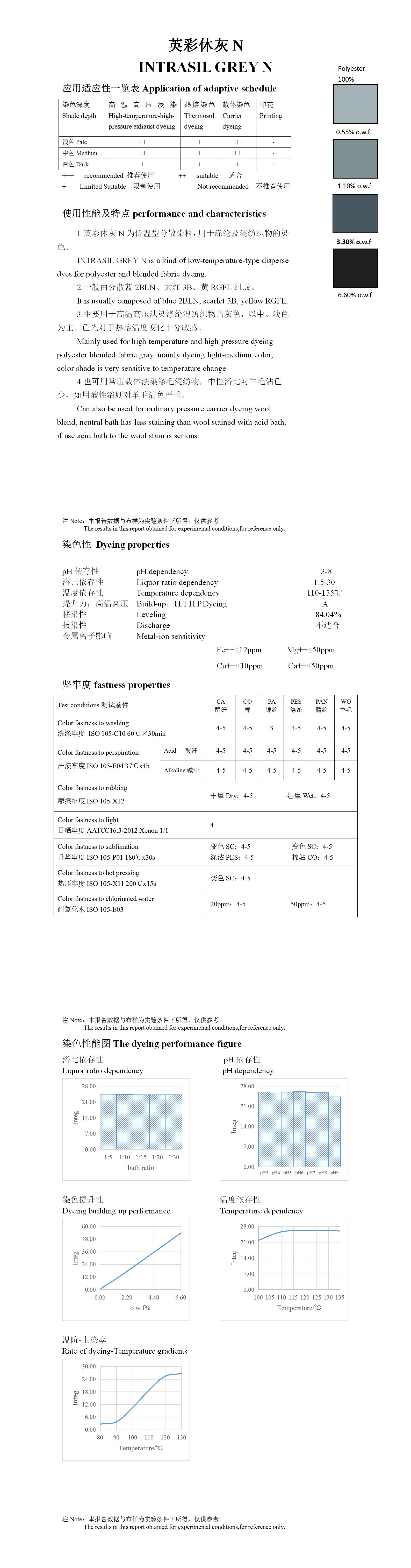 低温型分散染料,用于涤纶及混纺织物的染色。
