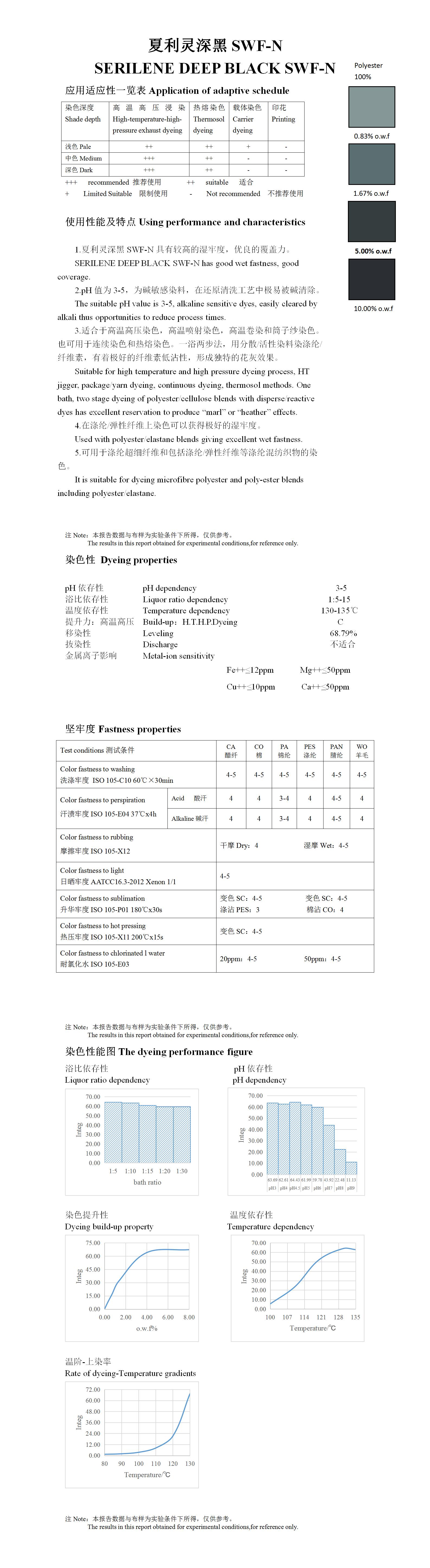Serilene Deep Black SWF-N has good wet fastness, good coverage.