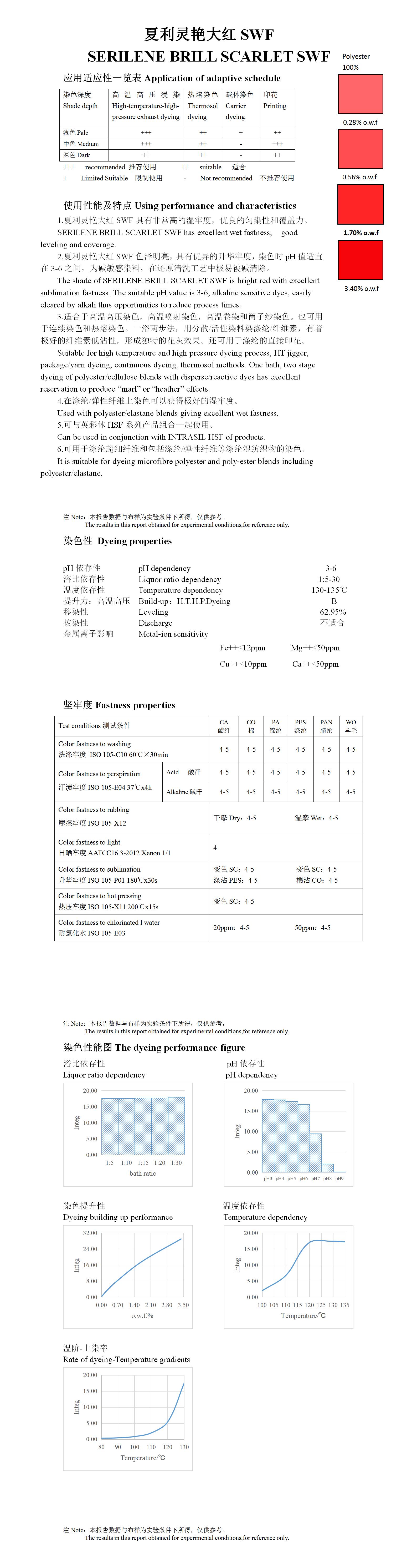 夏利灵艳大红SWF具有非常高的湿牢度,优良的匀染性和覆盖力。
